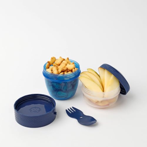 - حاوية متعددة الاستخدامات: وعاء محمول مع حجرات منفصلة لتخزين الوجبات الخفيفة والفواكه، مع غطاء شفاف للرؤية السهلة