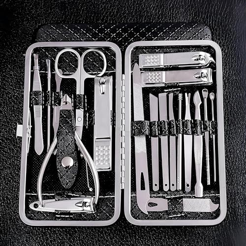 Generic - مجموعة عناية بالأظافر محمولة ومتينة من الفولاذ المقاوم للصدأ للعناية بالأظافر في المنزل أو أثناء التنقل ومناسبة لكل من اليدين والقدمين، 19 قطعة