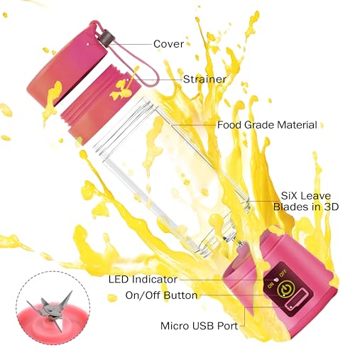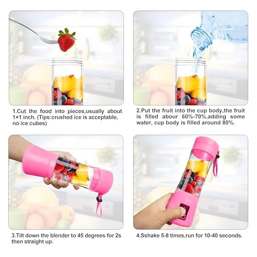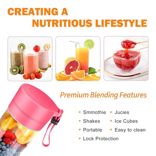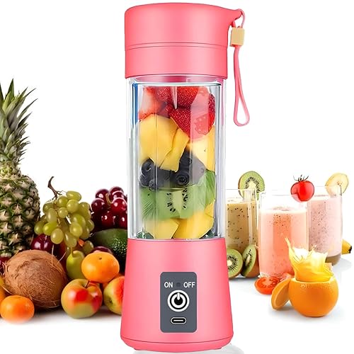 Generic - خلاط شخصي محمول مع USB قابل لإعادة الشحن للعصائر والمخفوقات، صانع عصير فواكه صغير مثالي للسفر مع زجاجات صغيرة لراحة أثناء التنقل (عبوة من قطعة واحدة)