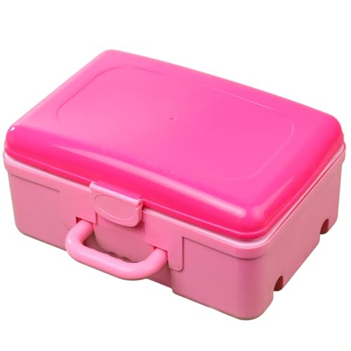 Generic - لانش بوكس بلاستيك محمول، علبة تخزين طعام مع مقبض، علبة حفظ طعام صغيرة، وردي