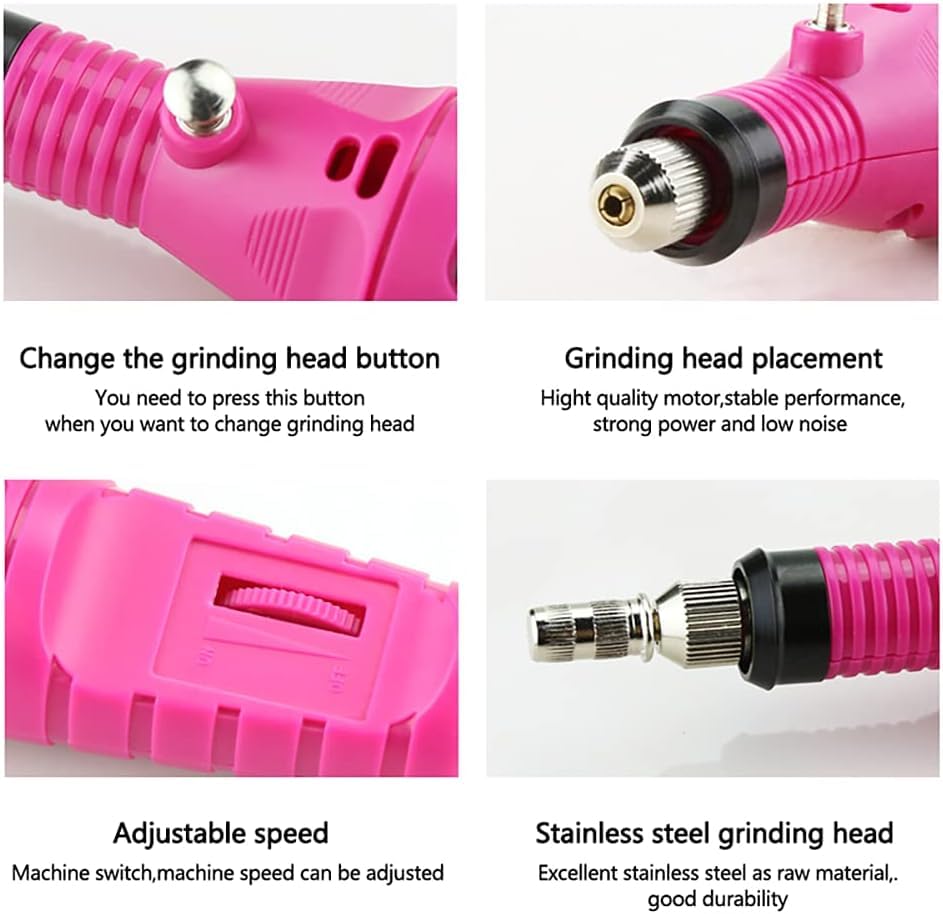 - متعدد الوظائف: مثقاب أظافر مع 6 رؤوس تبريد قياسية اختيارية (مع 6 أشرطة صنفرة) تعمل على تنعيم الذرة والمسامير بشكل فعال، وإزالة الزوائد اللحمية الزائدة وتبرد الأظافر وتشكيلها وتلميعها. سهولة تغيير الملحقات. لا حاجة لأي أدوات لإدخال أو إزالة القليل