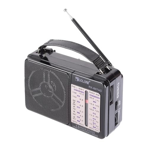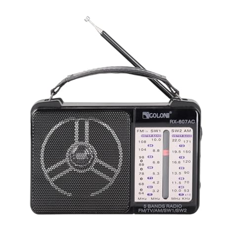 Generic - راديو محمول – استقبال 5 موجات (AM/FM/TV/SW1/SW2) – هوائي تلسكوبي طويل 360 درجة – صوت عالي الحساسية – موديل RX-607AC