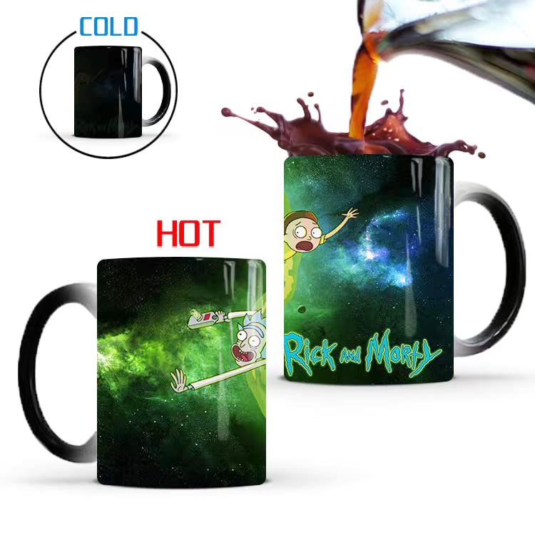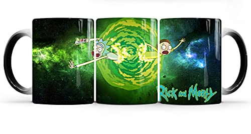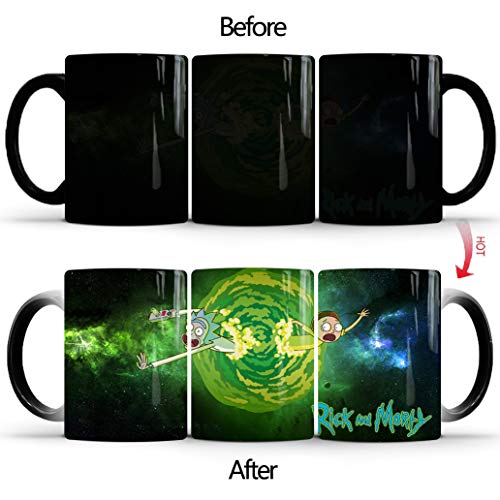- سحرية -- تبدو أكواب مورتي مظلمة مثل المساحة نفسها؛ اجعل الصورة تنبض بالحياة عن طريق إضافة سائل ساخن وشاهد الثنائي الفوضوي يظهر بطريقة سحرية.
