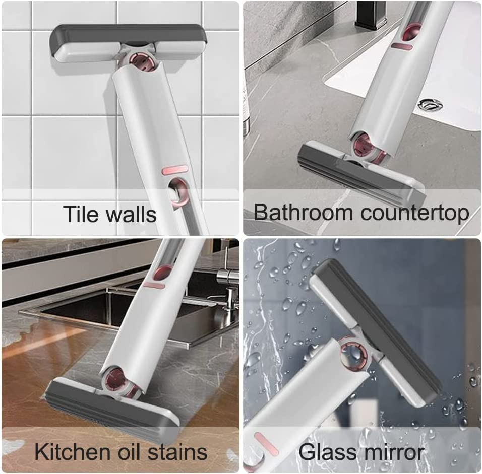 Spaceshoop - مساحة موب قصيرة محمولة ذاتية الضغط، مساحة صغيرة ليزي، لتنظيف بدون استخدام اليدين، قوية الامتصاص، للاستخدام الرطب والجاف، تنظيف الأرضيات للحمام والمطابخ وسطح المكتب والزجاج (مجموعة واحدة)