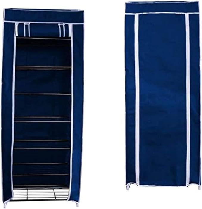 GENERIC - جزامة أحذية محمولة بعدد 9 رفوف مع غطاء قماشي أزرق كحلي، 9 رفوف