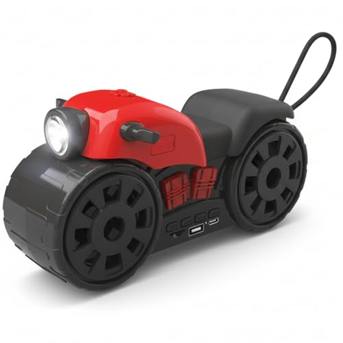 - التصميم: مكبر صوت محمول فريد على شكل دراجة نارية مع ضوء LED مدمج، يجمع بين الأناقة والعملية