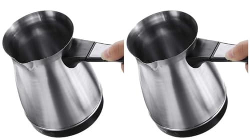Generic - غلاية قهوة محمولة من الستانلس ستيل - سعة 600 مل، سعة 5 اكواب، ماكينة تحضير قهوة كهربائية مقاومة للصدأ مع مقبض قابل للطي (فضي (قطعتان)