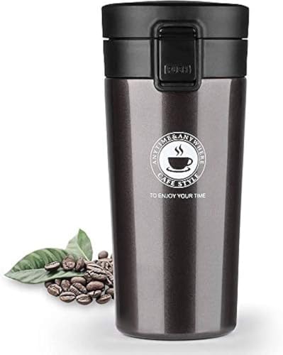 Generic - كوب سفر حراري محمول من الستانلس ستيل، تصميم جدار مزدوج، يحافظ على درجة الحرارة والبرودة لمدة 6 ساعات، مع قفل أمان (بني غامق)