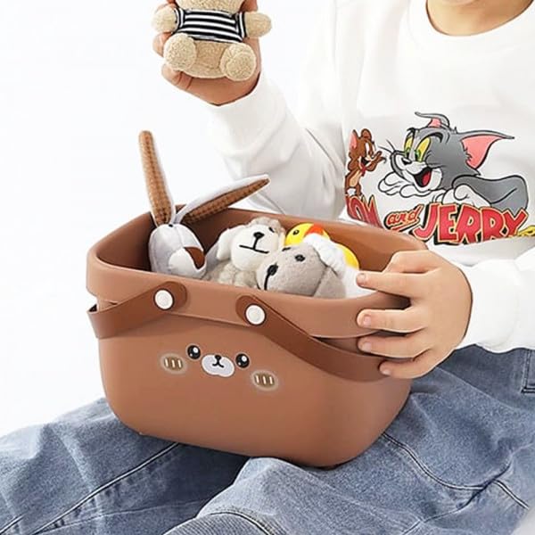 - تصميم متعدد الاستخدامات: سلة تخزين محمولة لطيفة بتصميم وجه دب، تتميز بمقابض حمل مزدوجة وهيكل بلاستيكي متين لسهولة النقل