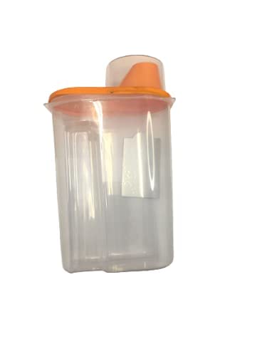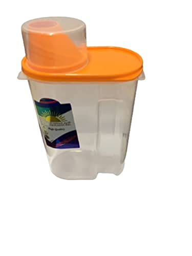 NEW - علبة تخزين محمولة محكمة الغلق بفوهة للسكب مع كوب قياس حفظ طعام بلاستيكية شفافة للارز والحبوب والدقيق والشوفان - لون برتقالي - 2.2 رطل - 1 كجم لحفظ الطعام الجاف