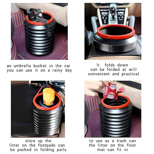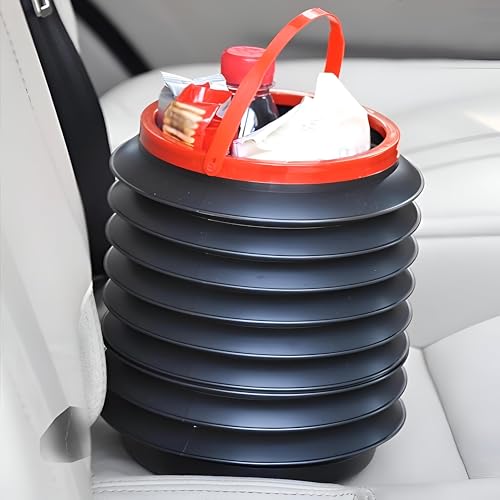 - تصميم متداخل يفتح ويغلق حسب الحاجة، مما يسمح لك بالتبديل بين سلة المهملات المدمجة وصندوق التخزين الصغير دون إهدار مساحة السيارة.