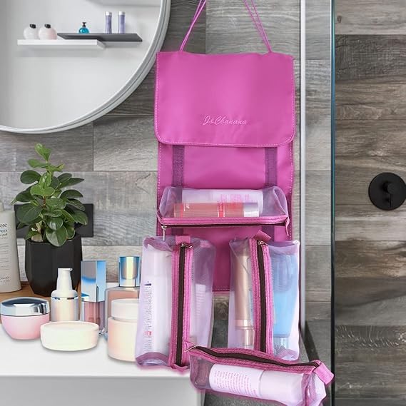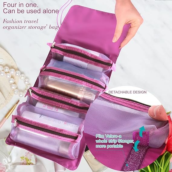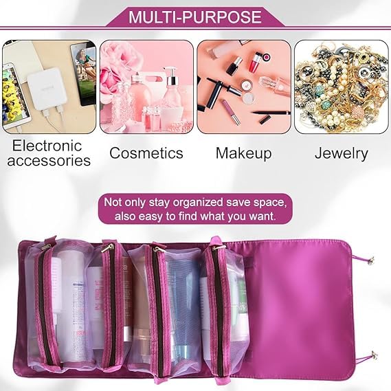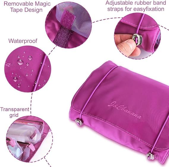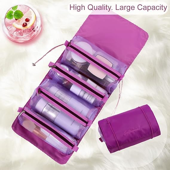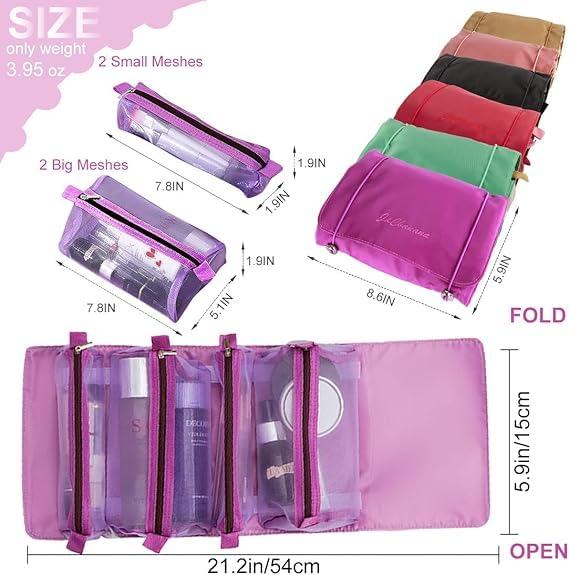 Generic - شنطة مكياج محمولة للسفر لتنظيم مستحضرات التجميل بشنط شبكية وحامل فرش للنساء والبنات، عمليه، قابله للتعليق، نايلون، ارجواني