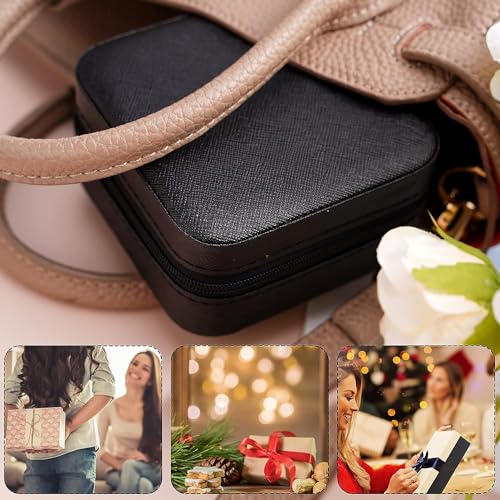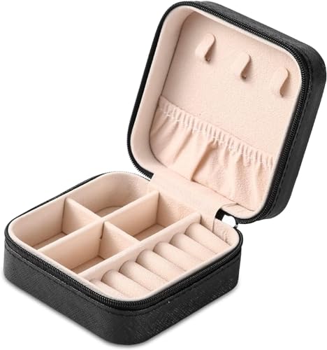 Generic - علبة مجوهرات من الجلد بتصميم صغير ومحمول للسفر، منظم مجوهرات للخواتم مناسب كهدية للبنات والنساء (أسود)