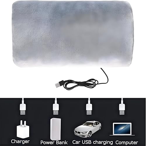 Generic - جهاز تدفئة محمول للسفر - وسادة تدفئة تعمل بمنفذ USB مع دعم للرقبة، وسادة مخملية مخملية رمادية 50 سم × 30 سم لليدين والدفء أثناء التنقل