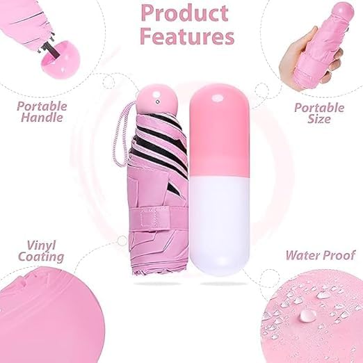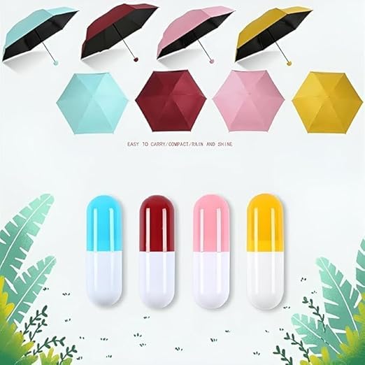 Generic - مظلة محمولة بحجم الجيب قابلة للطي، مقاومة للرياح وخفيفة الوزن، تمنح حماية من المطر وأشعة الشمس، تصميم كبسولة أنيق مناسب للسفر والتنقل، مثالية للرجال والنساء والأطفال