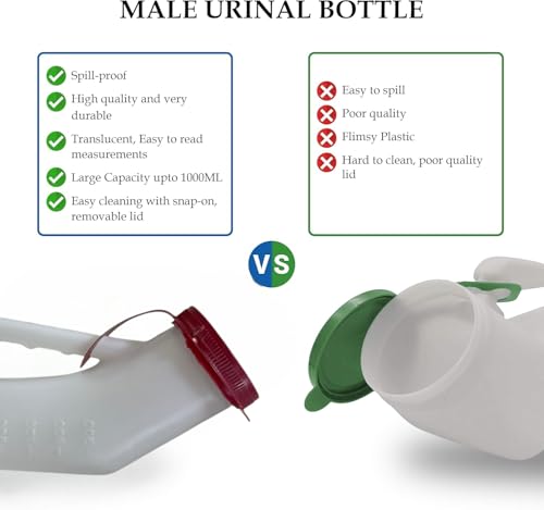 Generic - مبولة محمولة للرجال 30 اونصة/ 9000 مل، زجاجة مبولة للرجال لجانب السرير للسفر الطبي والتخييم، مبولة بلاستيكية سميكة للرجال مع مقياس قياس التبول - عبوه 1