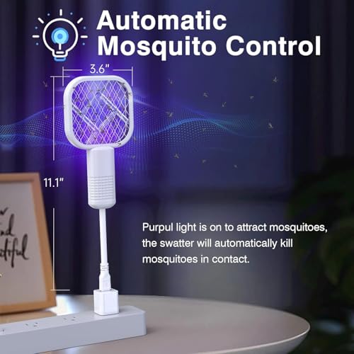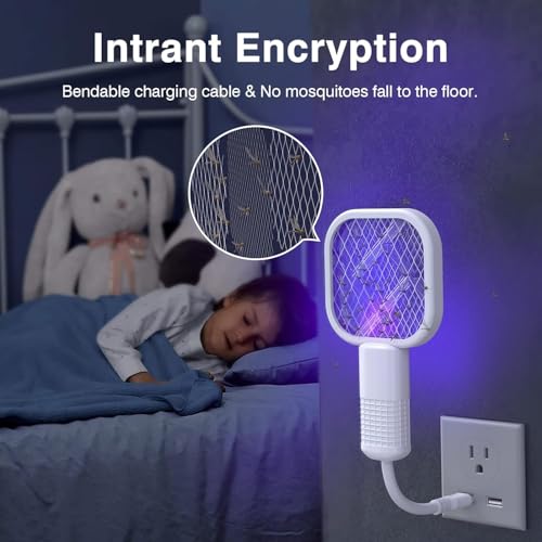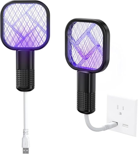 Plan A - مضرب كهربائي محمول USB لطرد البعوض – مضرب ذباب مزود بضوء الأشعة فوق البنفسجية (UV) وشرارة كهربائية حادة – فعال في قتل الحشرات داخل المنزل وخارجه – فخ متعدد الاستخدامات لمكافحة البعوض في الصيف