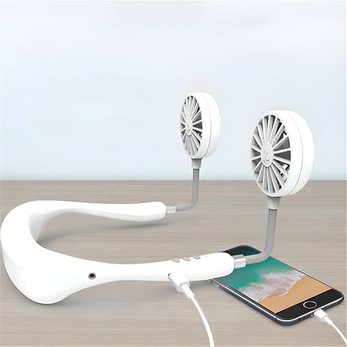 Generic - مروحة USB محمولة - راس تدفق هواء مزدوج بدون استخدام اليدين مع بطارية قابلة لاعادة الشحن، دوران 360 درجة، 3 اعدادات للسرعة، اضاءة LED للسفر والرياضة والمكتب والتخييم
