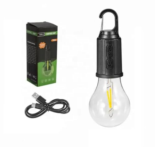 Generic - مصباح طوارئ LED محمول قابل للشحن عبر USB، مع حامل للتخييم، أسود