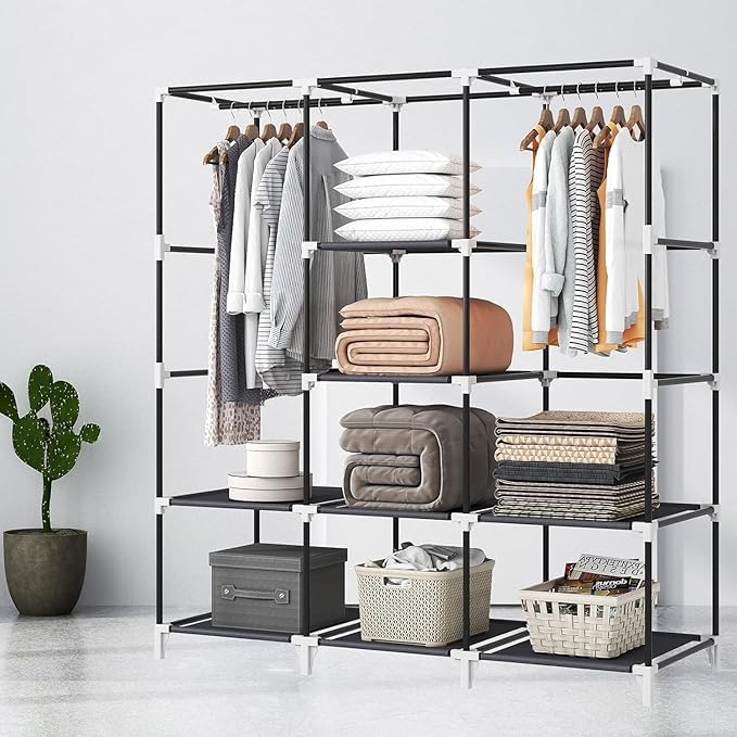 Generic - دولاب ملابس محمول، دواليب ملابس معلقة بعرض 1.3 م مع 2 قضيب تعليق و8 أرفف تخزين