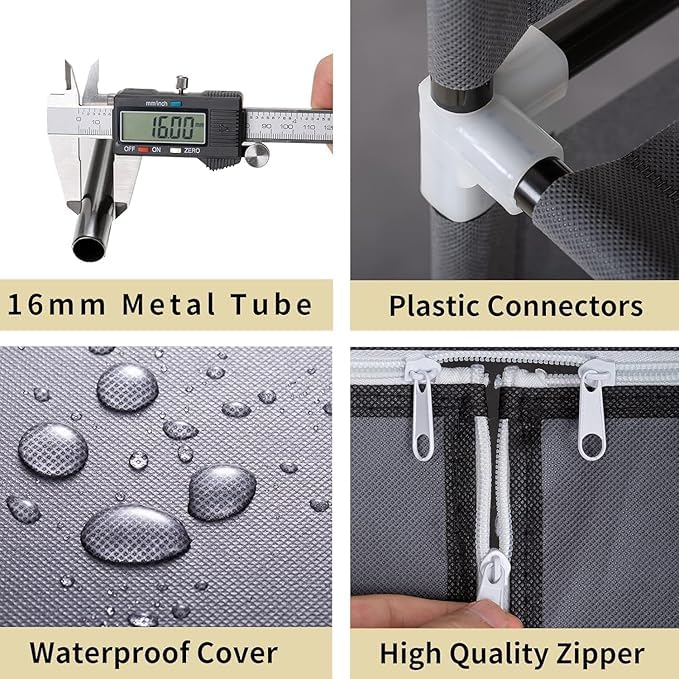 - ☀ هيكل قوي - مصنوع من غطاء غير منسوج، طبقات قماش مقاومة للماء، أنبوب فولاذي عالي الجودة، موصلات بلاستيكية من البولي بروبيلين، وأعمدة فولاذية مضافة إلى الجانبين والظهر، خزانة الملابس أكثر متانة وأقل احتمالية للطي.
