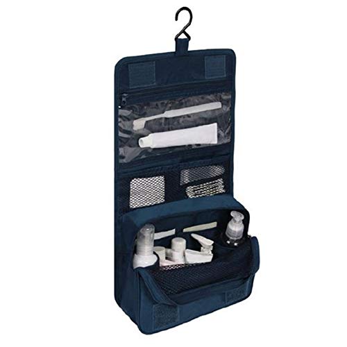 Spaceshoop - حقيبة ادوات تجميل قابلة للحمل مقاومة للماء لتخزين وتنظيم لوازم المكياج مناسبة للسفر، نايلون، ازرق