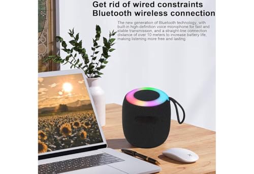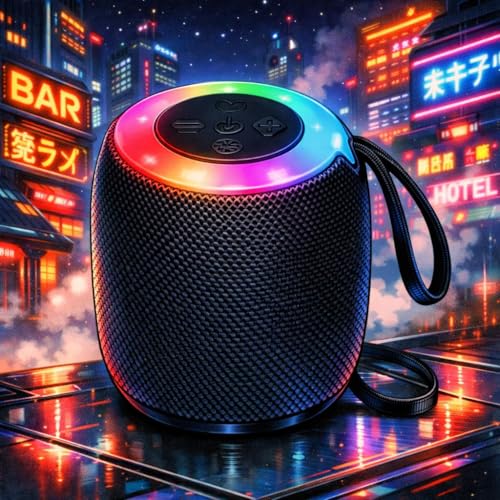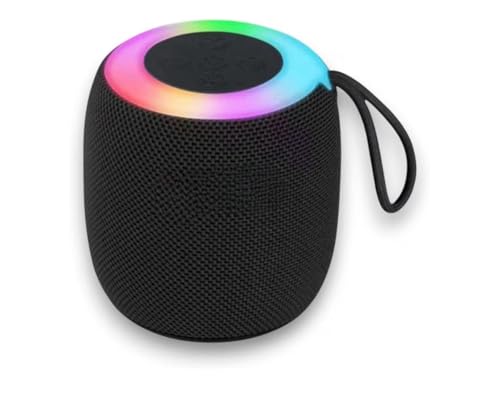 - إضاءة LED ملونة: يتميز بحلقة إضاءة LED متعددة الألوان في الأعلى تضيف أجواء مميزة وجذابة أثناء تشغيل الموسيقى