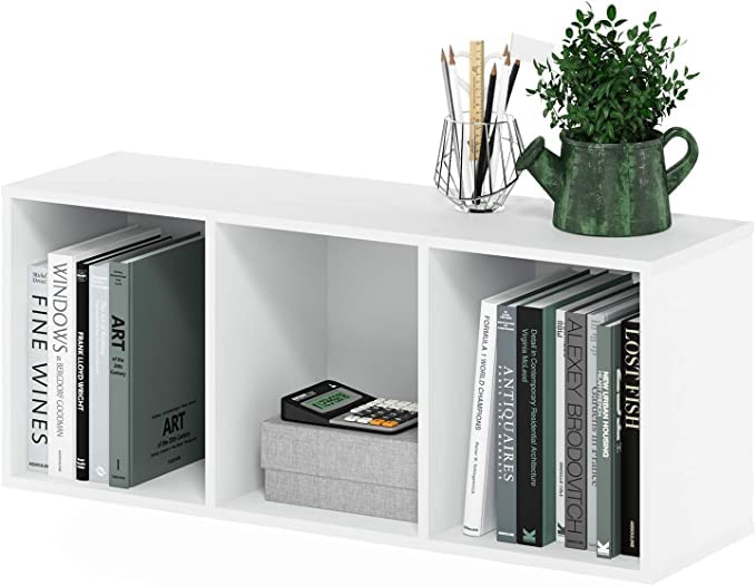 OVA - خزانة كتب مكعبة من 3 طبقات ارفف خشبية بيضاء وحدة تخزين اثاث المكتب وغرفة المعيشة 75 × 33 20 خشب مُصنع غير لامع