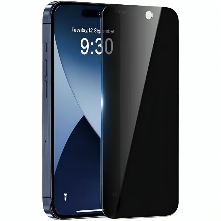 QUEST - شاشة حماية من الزجاج المقوى لحماية الخصوصية لموبايل آيفون 15 برو، شاشة حماية مضادة للتجسس بتغطية كاملة ولون شفاف من قطعة واحدة من بورتال ايه اي