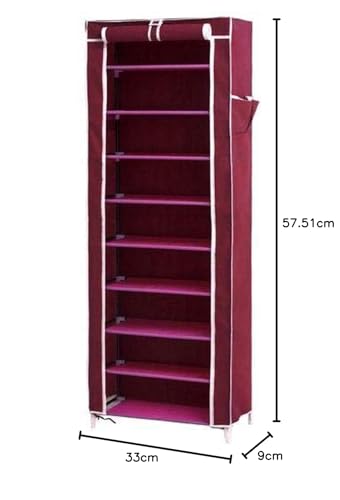 OVA - خزانة أحذية 10 طبقات من الماسة - لون أحمر