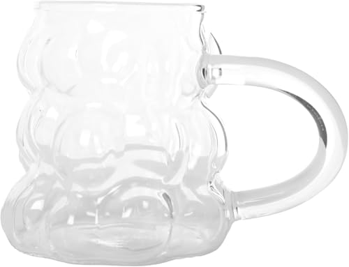 OVA - كوب قهوة زجاجي شفاف بمقبض بنمط فقاعات بابلز، 350 مل (قطعة واحدة)