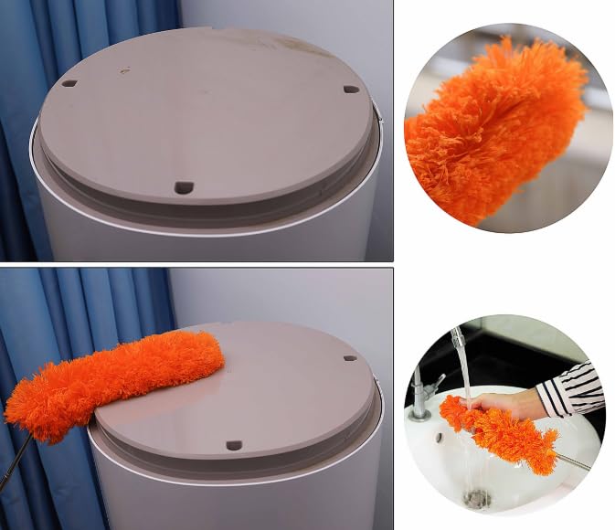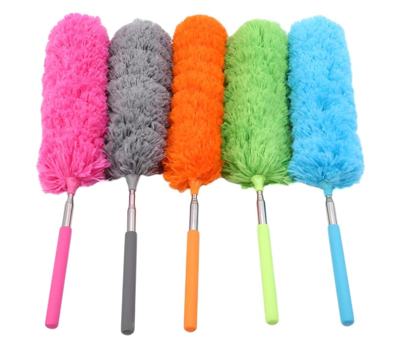 - مقبض قابل للتمدد: تتميز بمقبض تلسكوبي يسمح لك بضبط الطول لإزالة الغبار عن الأسقف العالية والجدران ومراوح السقف بسهولة وأمان.