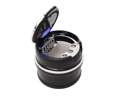 - تصميم الإضاءة الزرقاء: عند فتح ورفع الغطاء، تضيء مصابيح ليد الزرقاء الباردة في حامل الأكواب كميزة فريدة للسيارات. تعمل إضاءة LED على زيادة الرؤية الليلية والتأكد من أنه يمكنك رؤية الصينية والحفاظ على الرماد في منفضة سجائر سيارتك ومنع الرماد من الطيران.
