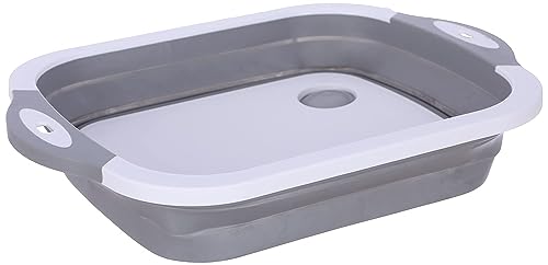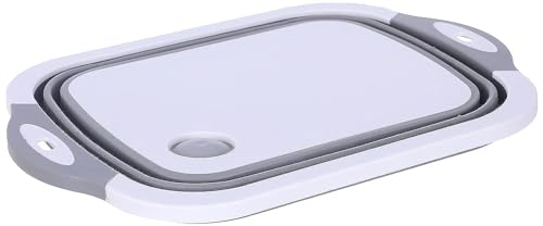 Spaceshoop - لوح تقطيع بلاستيكي محمول قابل للطي بمقبض سيليكون - أبيض ورمادي