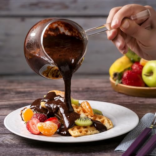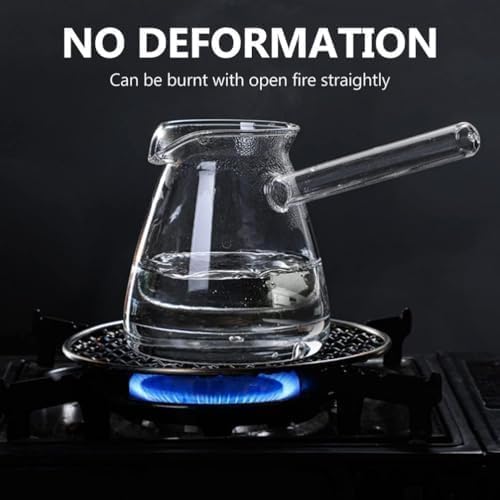 OVA - طقم كنكة قهوة تركي من الزجاج الشفاف مع مقبض جانبي للحليب والشوكولاته الساخنة والشاي وإذابة الزبدة للمنزل والمطبخ، مقاس صغير