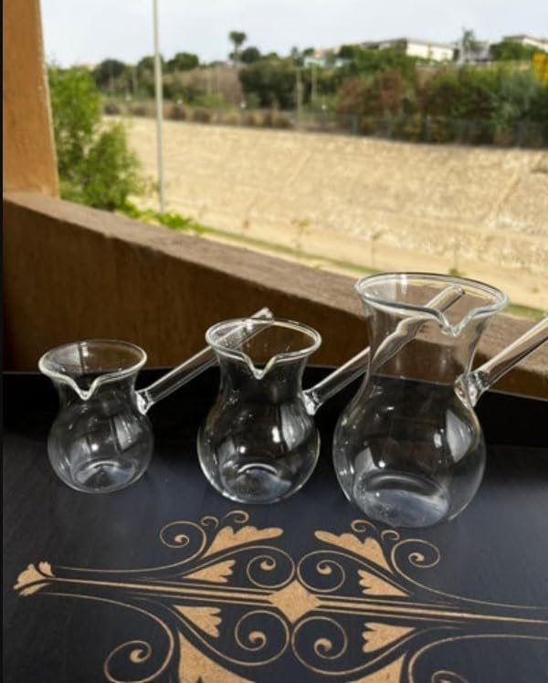 - وعاء إذابة الزبدة: الصنعة الدقيقة تجعلها ليس من السهل أن تتشوه أو تنكسر. دلة قهوة تركية زجاجية مناسبة للمنزل والمكتب والمطاعم وأماكن أخرى. كما تستخدم ككنكة قهوة تركي أو إبريق شاي وحليب وصلصة أو لإذابة الزبدة وطهي البيض وأكثر.