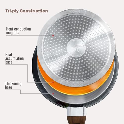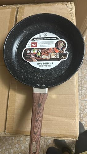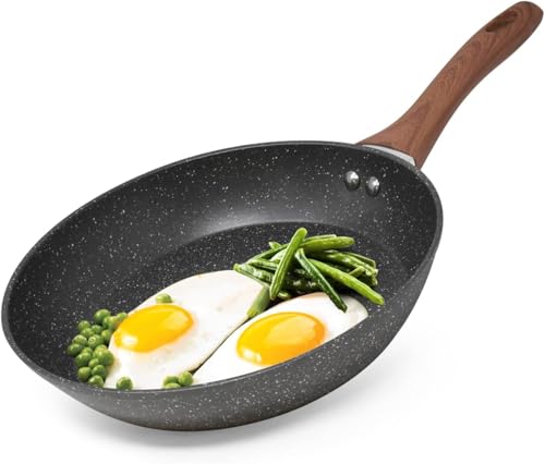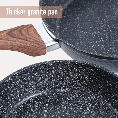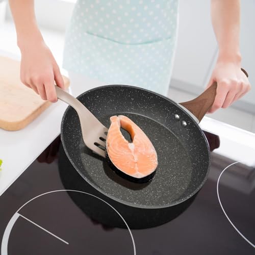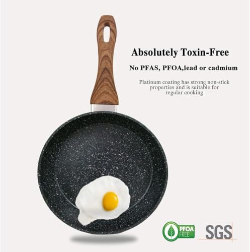 Portal - طاسة قلي جرانيت بيد خشبية غير لاصقة، طاسة ووك للمطبخ بلون كريمي (22 سم - أسود)