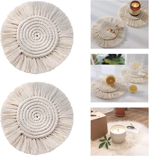 OVA - قاعدة اكواب مكرمية مصنوعة يدويا من بورتال - سجادة اكواب قطنية بنمط بوهو (قطعة واحدة)