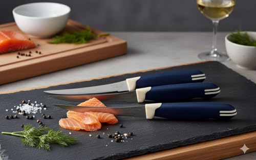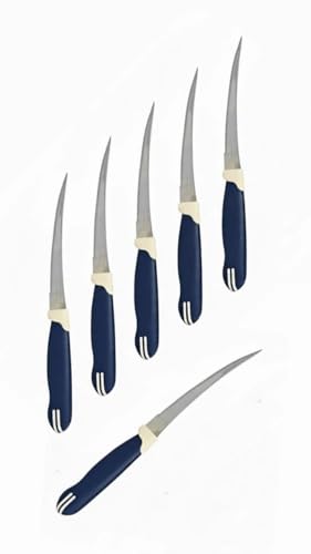OVA - سكينة مطبخ بمقبض بلاستيك (لون أزرق)، مقاس 33.5 × 5.5 سم، (6 قطع)