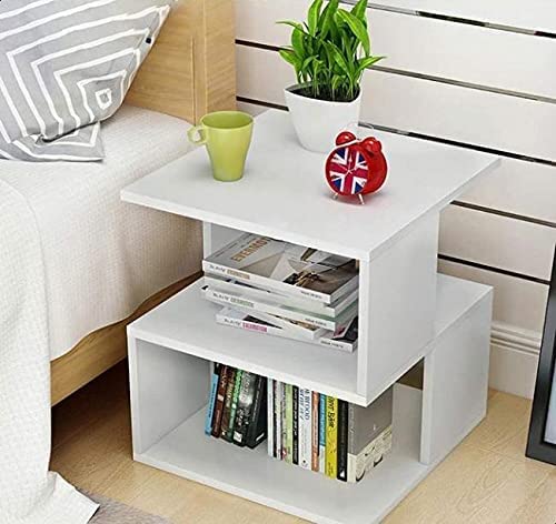 OVA - طاولة جانبية خشبية للسرير من هوم تو جو - أبيض