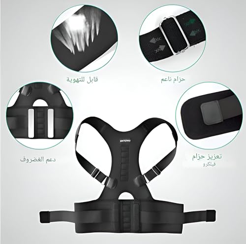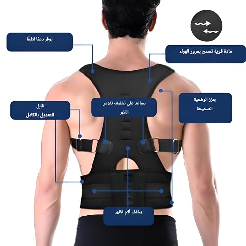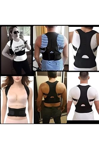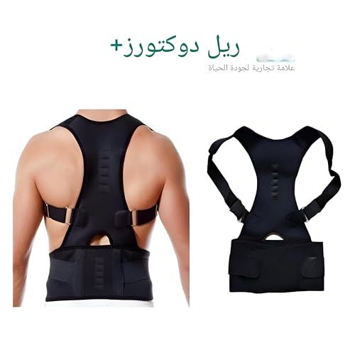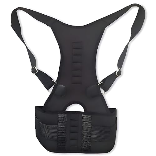 Generic - حزام وضعية الجسم - دعم مريح للظهر مع عناصر مغناطيسية، حجم قابل للتعديل بالكامل وقوة سحب للرجال والنساء، تصميم مضاد للانزلاق، مادة سوداء متينة للراحة اليومية