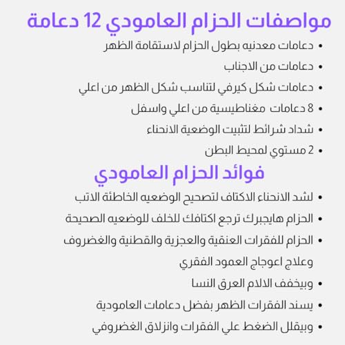 Generic - حزام عامودي مصحح وضعية الظهر للرجال والنساء - مزود ب12دعامة ظهر لدعم الفقرات كاملا حتي فقرات القطنية (مقاس 3XL من 100 الي 120 كيلو)