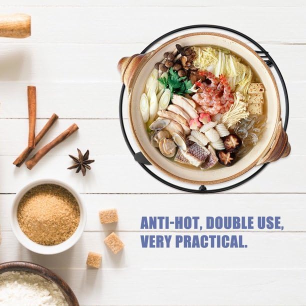 Spaceshoop - قاعدة اواني من الحديد للاواني الساخنة والمفارش، حامل دائري ومقاوم للحرارة يوضع على ترابيزة المطبخ (20 سم، قطعتين)