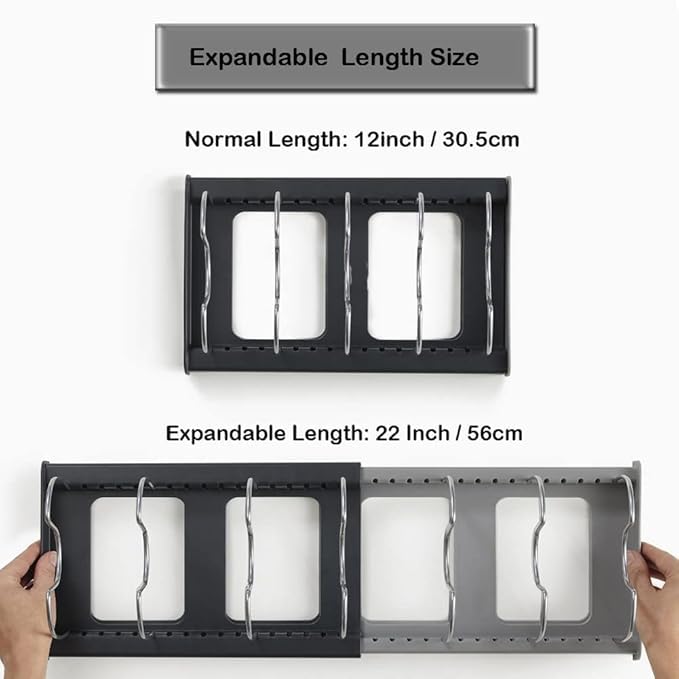 - قابلة للتوسيع ليناسب أي مكان: مع تصميم مرن يمتد من 30 إلى 56 سم، فإنه يتكيف بشكل مناسب مع الدرج أو الرف أو سطح الطاولة - بدون أدوات وبدون ضغط.