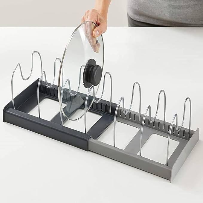 - لا مزيد من الأغطية المفقودة: هل سئمت من البحث في الدواليب الفوضوية للحصول على غطاء حلة مطابق؟ يحافظ هذا المنظم الذكي على كل غطاء في وضع مستقيم ومرئي وفي متناول اليد.