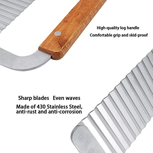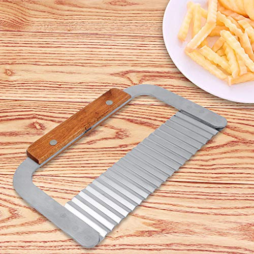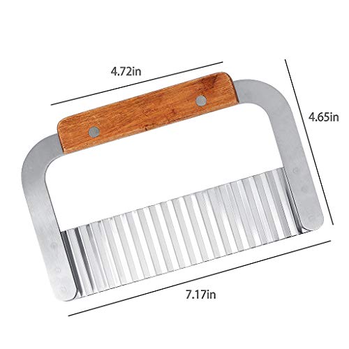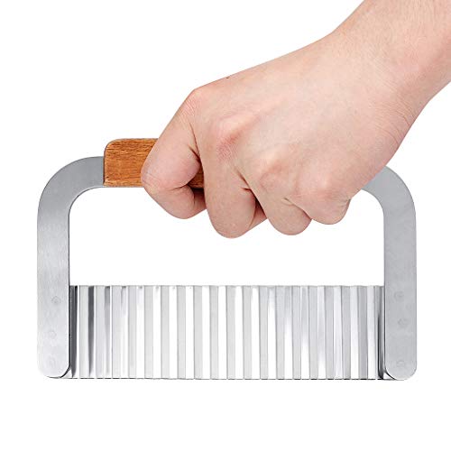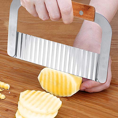 YOYUSH - قطاعة بطاطس مجعدة، قطاعة رقائق من الستانلس ستيل، شفرة بمقبض خشبي للمطبخ، قطاعة رافيولي للخضروات، فضي