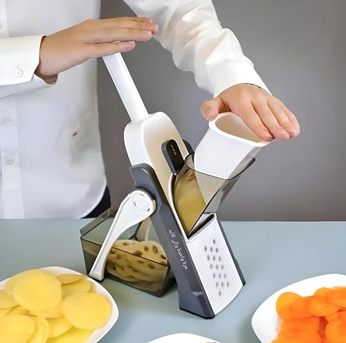 - تأتي قطاعة الخضروات متعددة الوظائف هذه مع شفرات من الستانلس ستيل مصممة لتوفير المتانة والدقة، مما يجعلها أداة مثالية لكل من الطهاة المنزليين والخبراء على حد سواء، مما يوفر خيارات متعددة للتقطيع وعمل المكعبات.