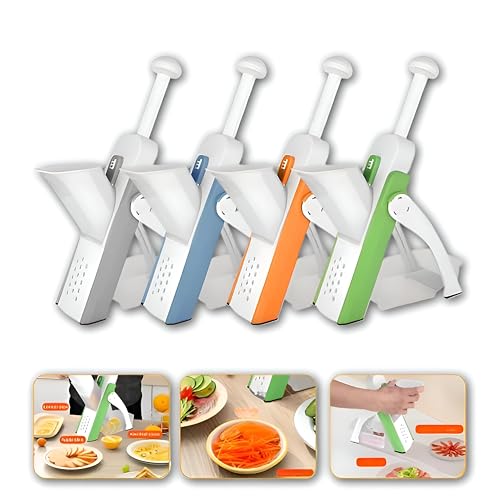 Generic - قطاعة بطاطس - قطاعة شرائح خضروات يدوية متعددة الوظائف بشفرات من الفولاذ المقاوم للصدأ لتقطيع دقيق وتحضير للطهي، (4 قطع من اللون الموضح)