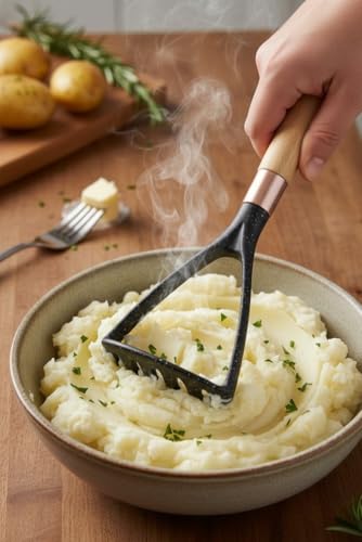 - هراسة بطاطس مصنوعة من السيليكون الذي يحول البطاطس الصلبة إلى هريس ناعم ورقيق في دقائق، لذلك يكون الغداء جاهزًا قبل أن يسأل الجميع