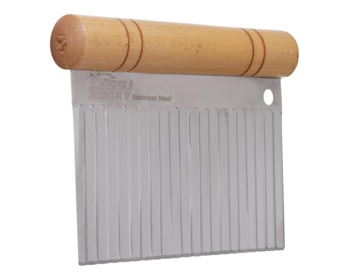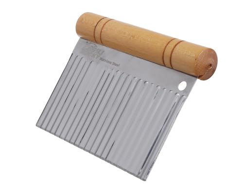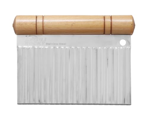 Generic - قطاعة بطاطس مسننة استانلس ستيل بمقبض خشب لتقطيع البطاطس والخضروات والفواكه بشكل مموج فضي وبيج